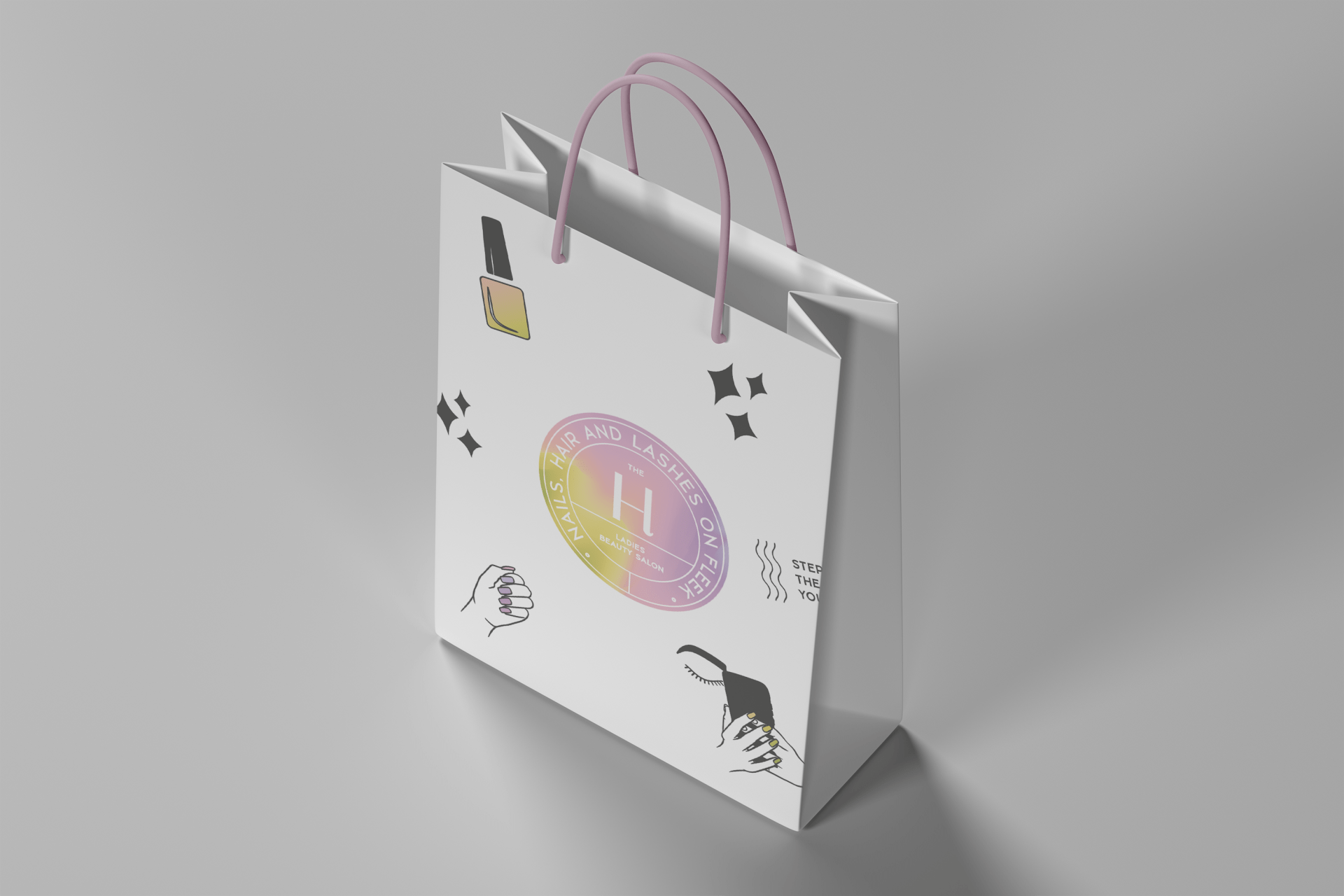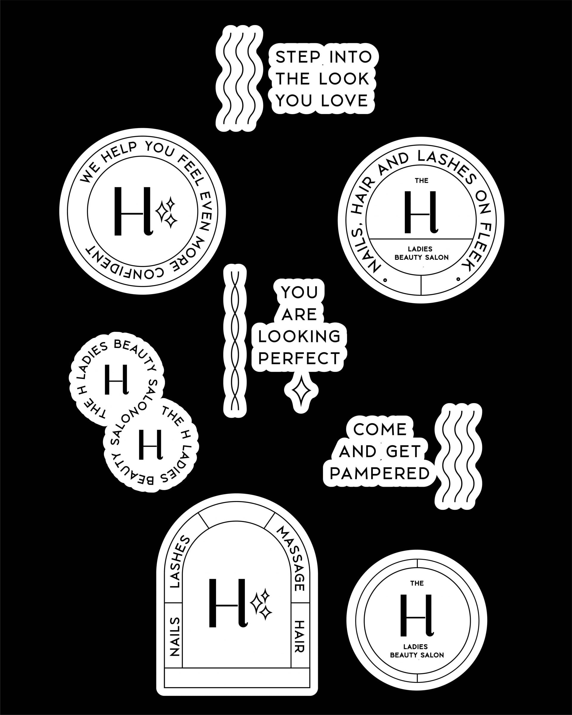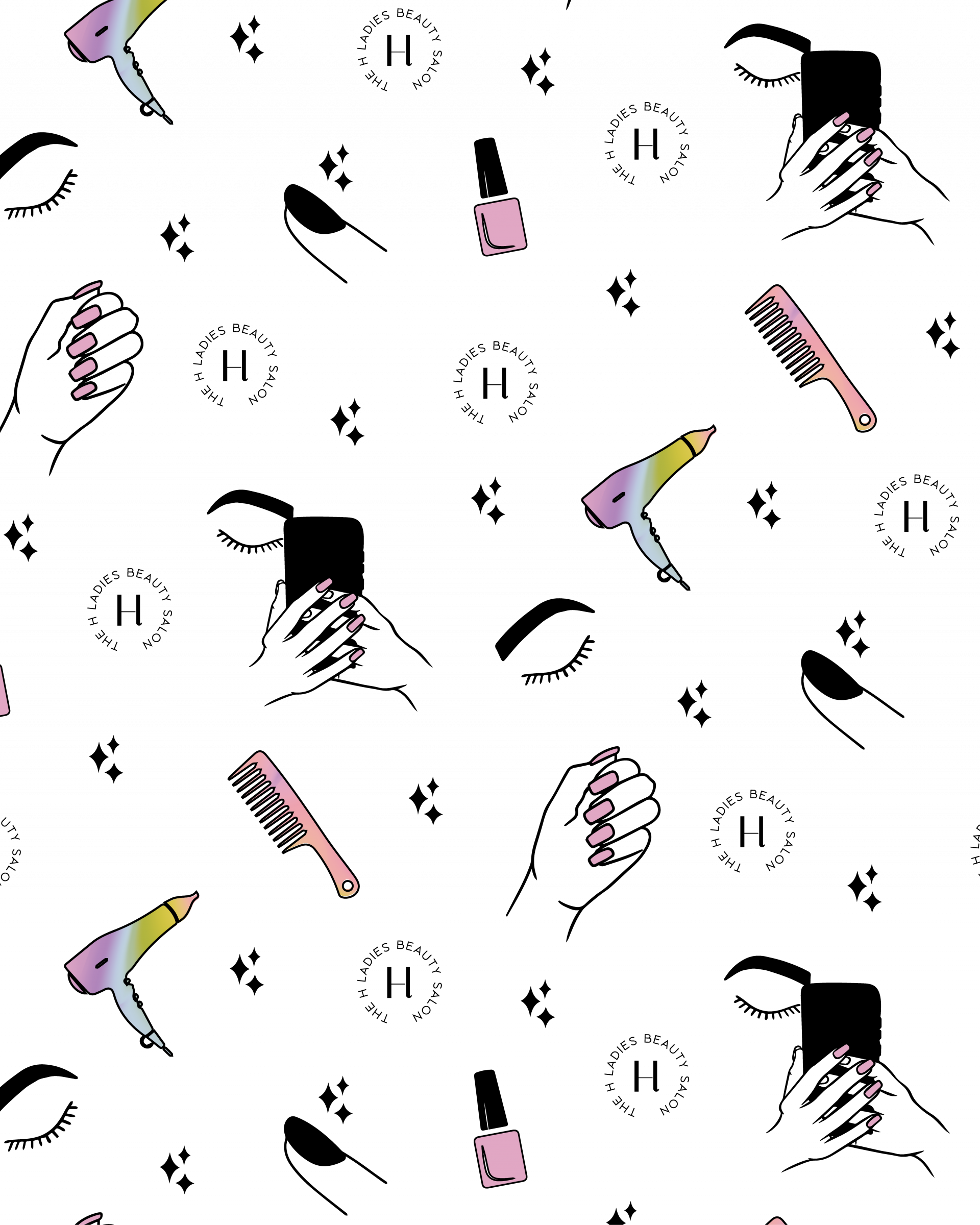 The H beauty ladies salon needed a rebrand for their new salon. A playful but elegant branding and packaging. The H beauty ladies salon helps stressed out women, with luxurious hair, nails, lashes services to feel relaxed while looking on point in a comfortable setting, so they can rock the days ahead and feel like they can take on the world again without the daily stress and hassle.